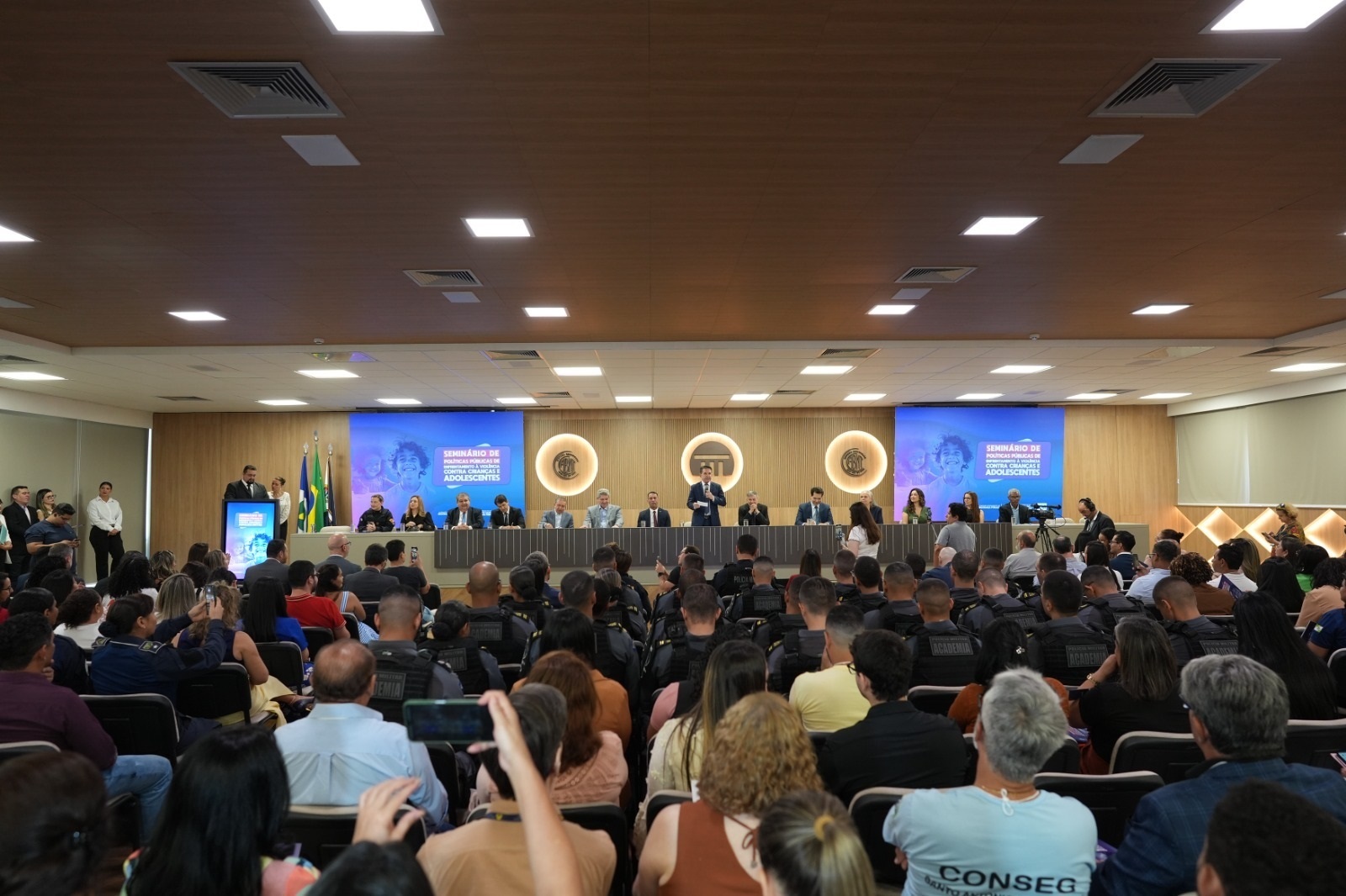 | Encontro reúne mais de 400 participantes de 78 municípios em debate sobre estratégias conjuntas de proteção à infância.Clique aqui para ampliar |